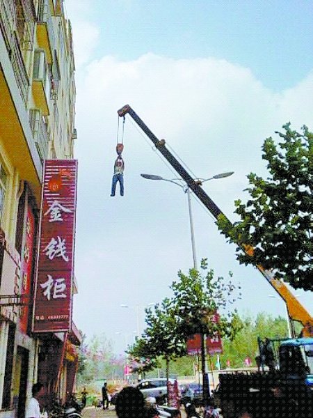 6月27日上午,洛陽嵩縣建設(shè)路西段上演了驚險一幕,吊車的吊臂將一名工人從地面吊起,直接送到10多米高空進行作業(yè),路人大呼:最牛高空作業(yè)!