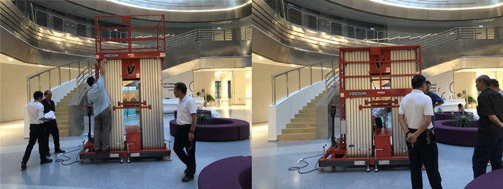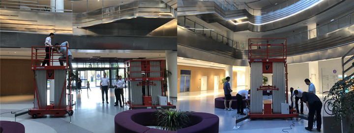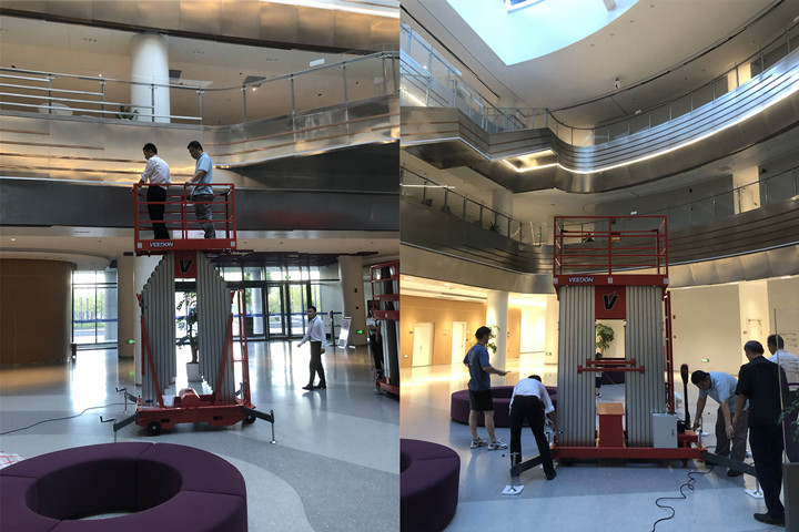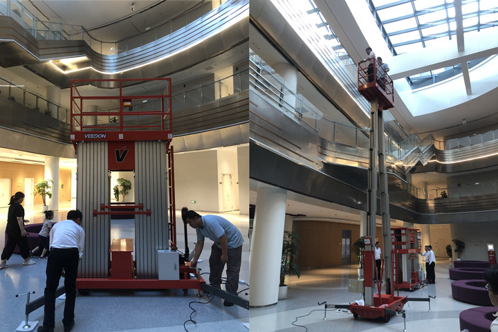 Veedon威登桅桿式高空作業(yè)升降平臺(tái),多桅桿式升降機(jī)用于西交利物浦大學(xué)教學(xué)樓,辦公樓,體育館等場(chǎng)所的日常檢修維護(hù)等工作