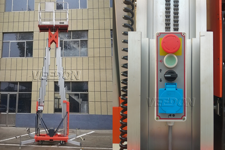 ● 控制板上有緊急停止,上升,下降和公共按鈕;上升或下降時(shí)均需按住對(duì)應(yīng)的按鈕和“公共”鍵,方能啟動(dòng)升降。避免工人意外碰觸或因誤操作單鍵啟動(dòng)升降而發(fā)生意外。