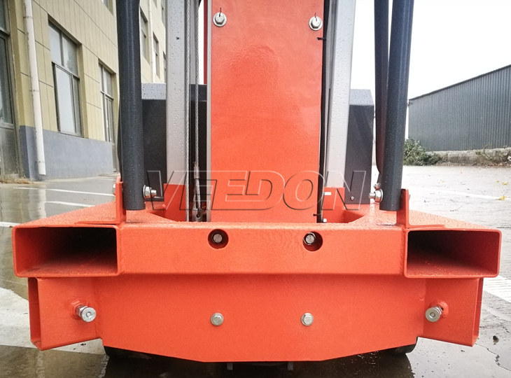 ● 立柱寬度決定平臺(tái)升起后的晃動(dòng)程度,睿思采用200mm的高強(qiáng)度鋁合金超寬立柱,可保證操作臺(tái)晃動(dòng)更小。