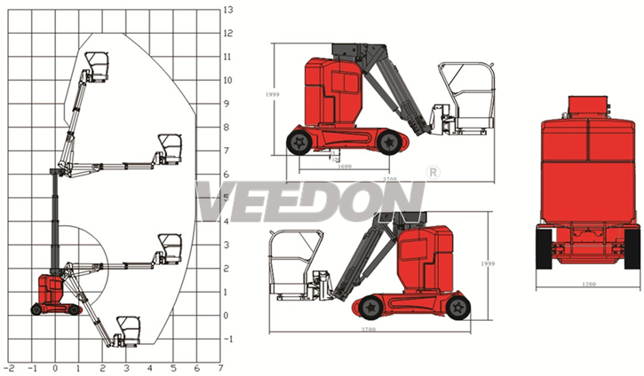伸縮臂前端配置有擺動(dòng)油缸,使平臺(tái)轉(zhuǎn)動(dòng)范圍達(dá)到±45°,明顯加大用戶的作業(yè)范圍。
