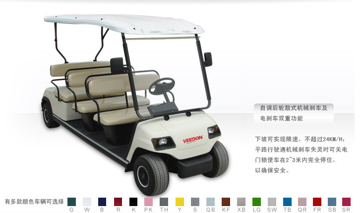 威登GC-6電動高爾夫球車性能穩(wěn)定、操控輕便是威登GC-6電動高爾夫球車的最大特點。威登GC-6電動高爾夫球車在全球范圍內(nèi)擁有大量的客戶。從高爾夫球場、別墅、酒店、學(xué)校到私人用戶,威登GC-6電動高爾夫球車都將是您最便捷的短途交通工具。